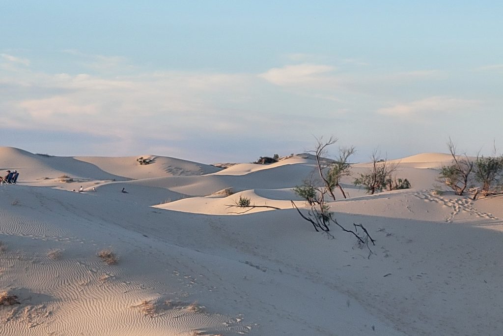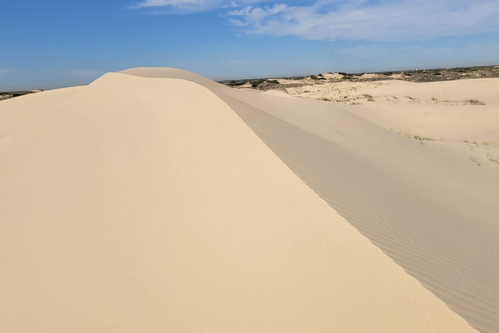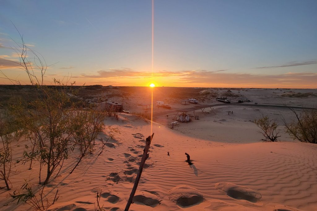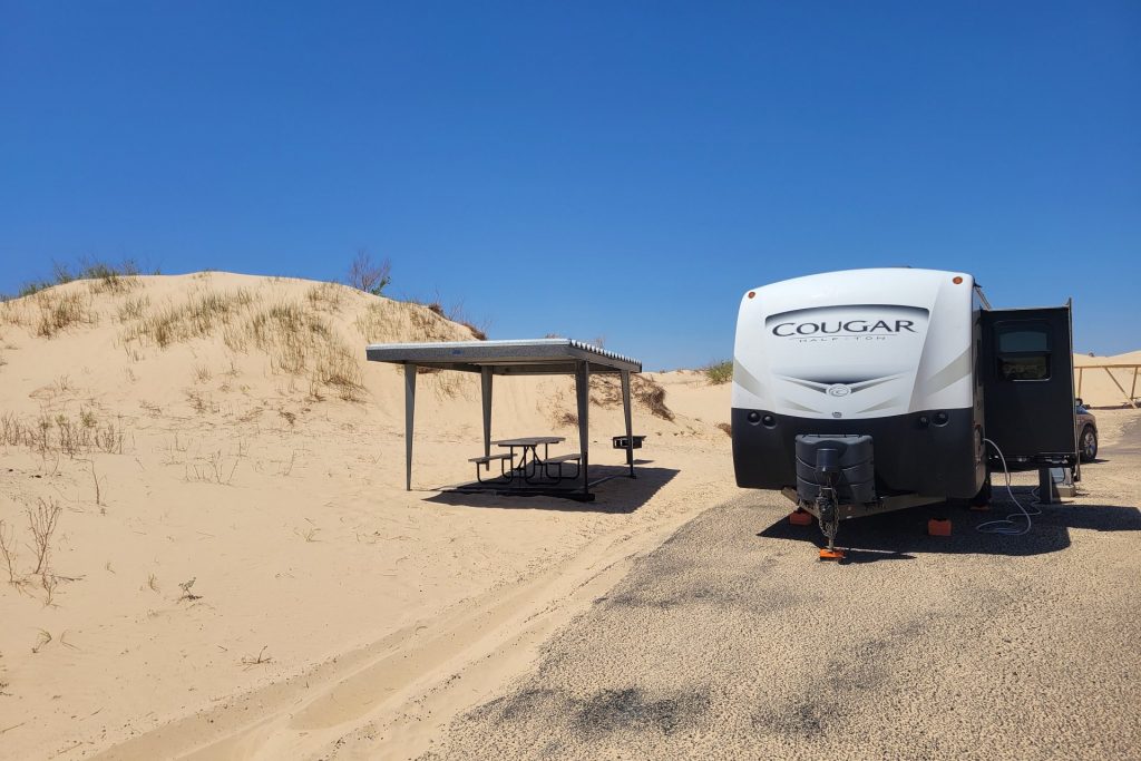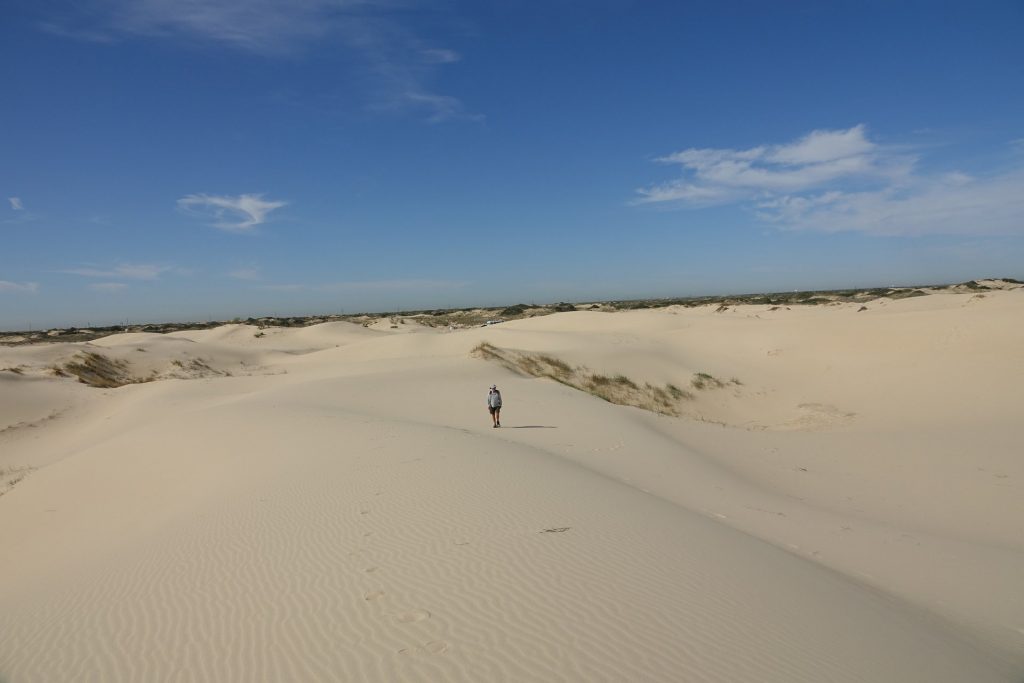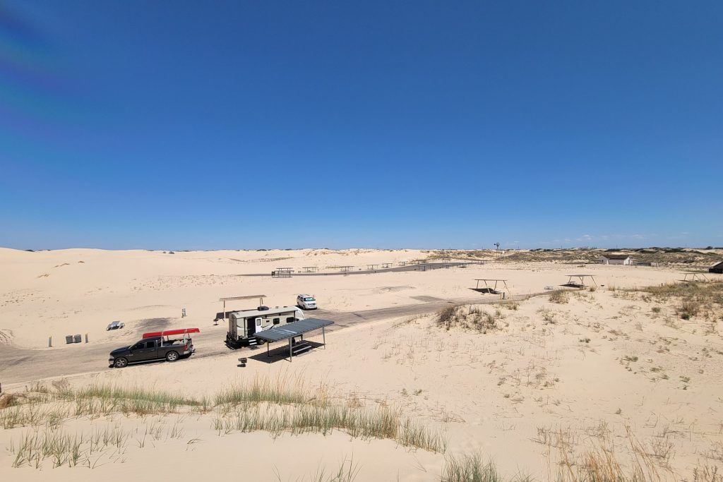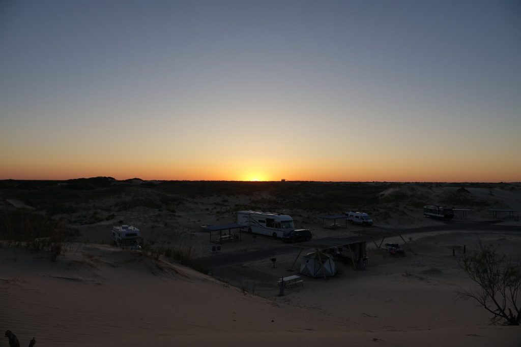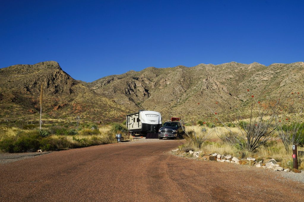 The next Stop – Davis Mountains State Park Our campsiteGreat views from the parks Skyline DriveWe visit the Fort Davis National Historic Site Troops stationed at the post protected emigrants, freighters, mail coaches, and travelers on the San Antonio-El Paso Road hoping to reach the gold fields of California.Living Quarters in the fortSome of the rebuild buildings – Officers’ Quarters and HeaquarterOn the way we discovered the Chihuahuan Desert Research Institute …. with nice trails, a botanical garden and the cactus museum.Walking the overlook trailDesert Rose in the botanical garden with local plants… and a “Mock Orange”.The Cactus Museum is super nice !! So many cacti are in bloom.…Our next stop is Monahans Sandhills State Park – we have been here before and liked it a lot – we stopped again for a bit longer this time. “A mystical place where the wind sculpts sand dunes into peaks and valleys, sometimes overÂnight.”Our campsiteOur campsite from the dune next to us (“our” sunset dune 🙂 ).Endless sand dunes in the 3,840-acre state park.Looks like – just the top of the tree is visible. On the morning dune walk we have many animal tracks to identify in the sand.And many Scales Quails around our campground …… along with beautiful wild flowers everywhere. Great sunrise… and sunsetWith a full moon !A working Pump Jack in the Park !We visit the small town of Monahans – not much here …… but a very interesting museum.The “Million Barrel Tank” is just one of the many exabits here! Before building the pipelines – this was shortly used as a temporary storage. Air Force museum… and even a small Coca Cola Museum here.On the way to the next stop …we went for a swim in Balmorhea State Park – in the crystal-clear water of the world’s largest spring-fed swimming pool.Our next stop is Franklin Mountains State Park – in the mountains around El Paso, TexasOur campsite – and the best part – we have the hole campground for ourselves.Very nice views all around us.The ocotillos are in full bloom here …… what a beautiful color in the middle of the desert!Oh in Germany we would call them “Schwiegermutter-Sitz” (Mother-In-Law-Seat) .. but they are some kind of Barrel Cactus.Awesome Sunset and Campfires at night!Looking at the stars at nightWe walk the Aztec Trail.… to a cave …with a great view to the mountains.It was easy to come up here – down was a bit difficult.We visited El Paso and drove Scenic Drive with a great view over the town.Also at night from the campground – we could see El Paso.